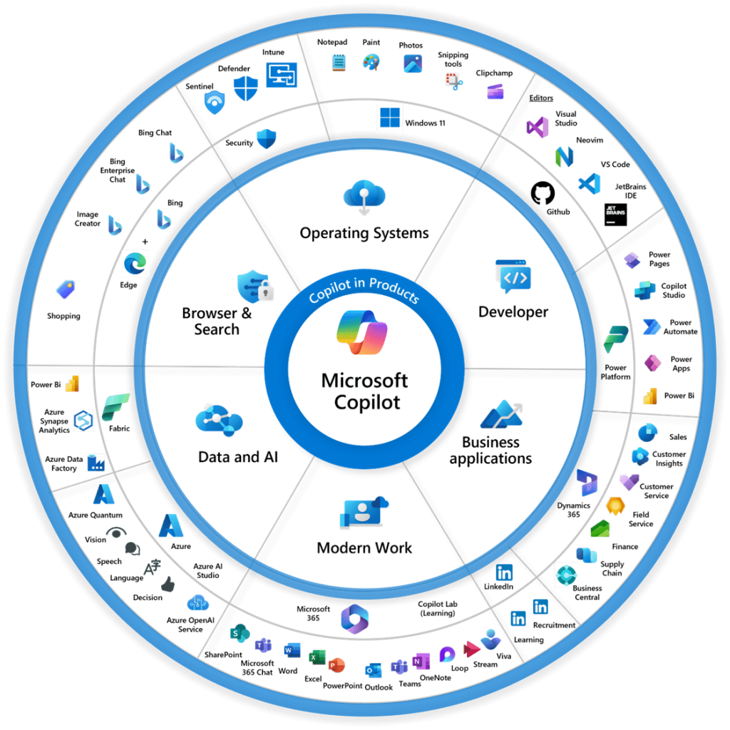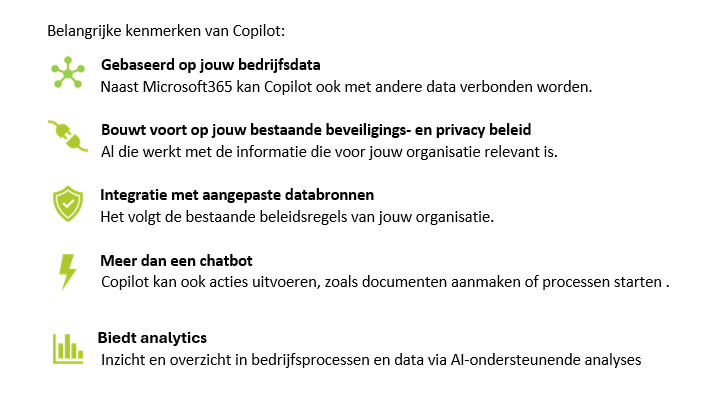 Het is belangrijk om te weten dat Copilot niet hetzelfde is als de “365 Copilot” die je misschien in Word of Excel ziet. De kern van Copilot is de orchestratie van AI-agents over verschillende apps en bedrijfsdata heen. 365 Copilot is een specifieke toepassing van deze technologie binnen de bekende Microsoft 365-producten.